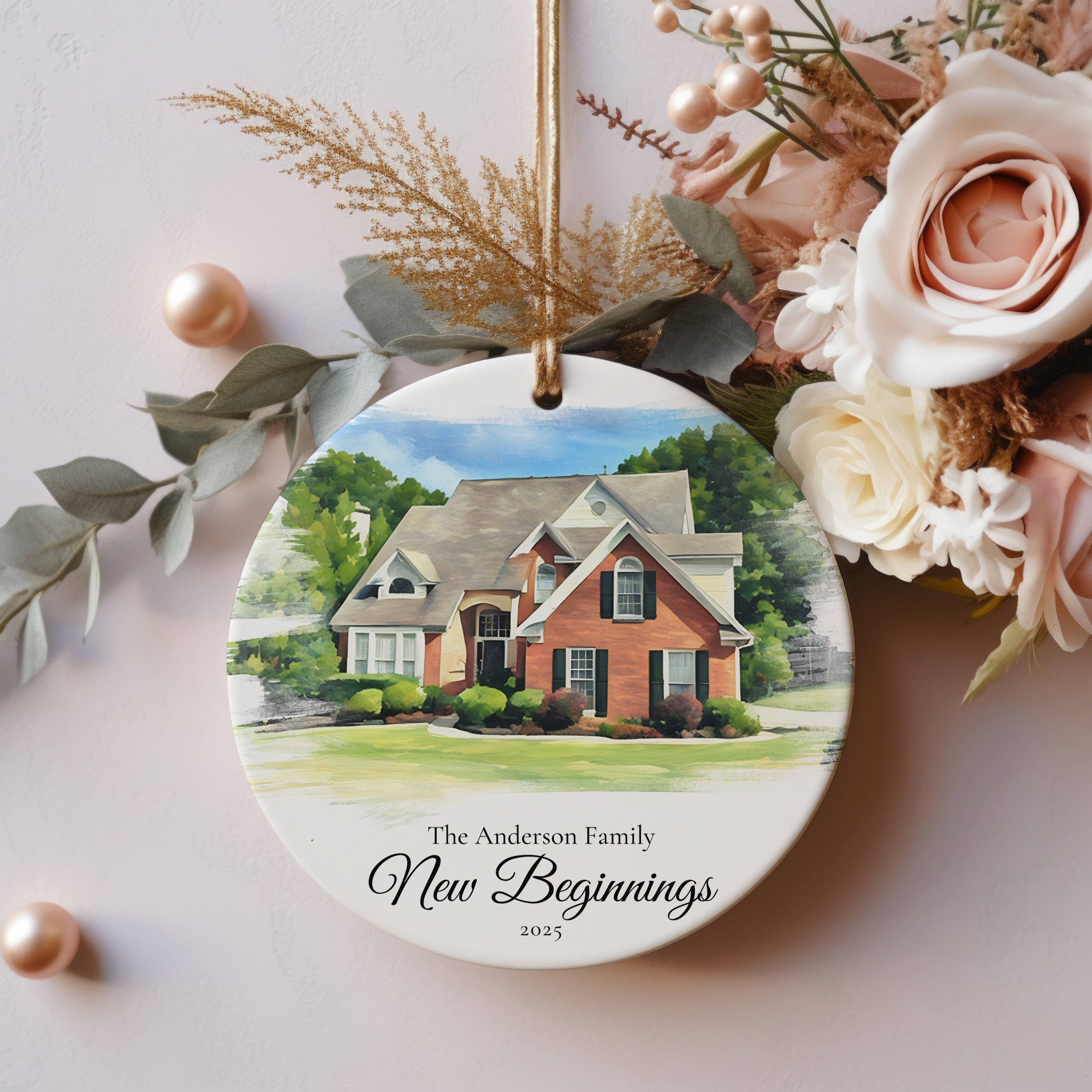 Custom Watercolor House Ornament – Personalized New Home Gift