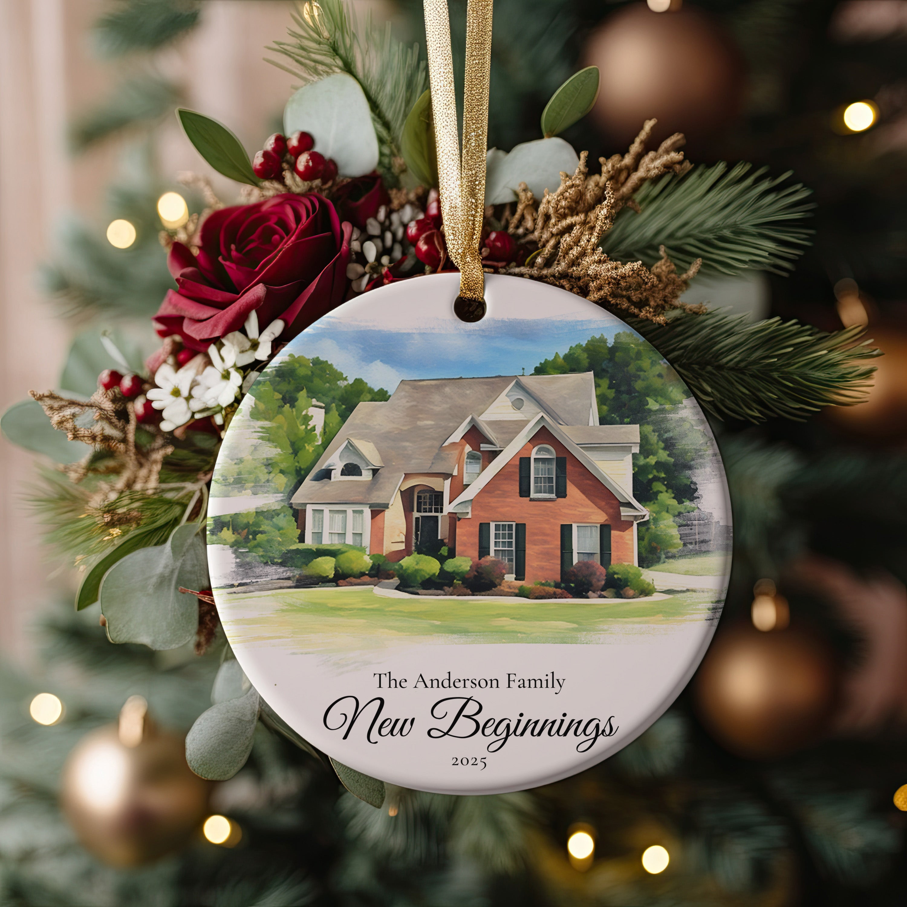 Includes personalized watercolor house ornaments using photos of closed homes.
